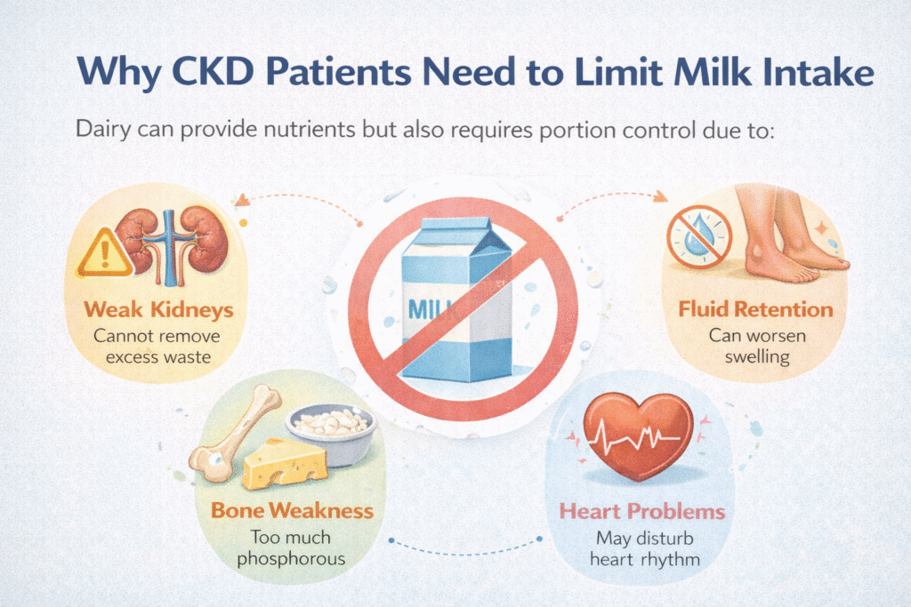 Milk for CKD patients can support nutrition only when portion size and frequency are planned. Excess intake can worsen swelling, bone weakness, itching, and heart rhythm problems.